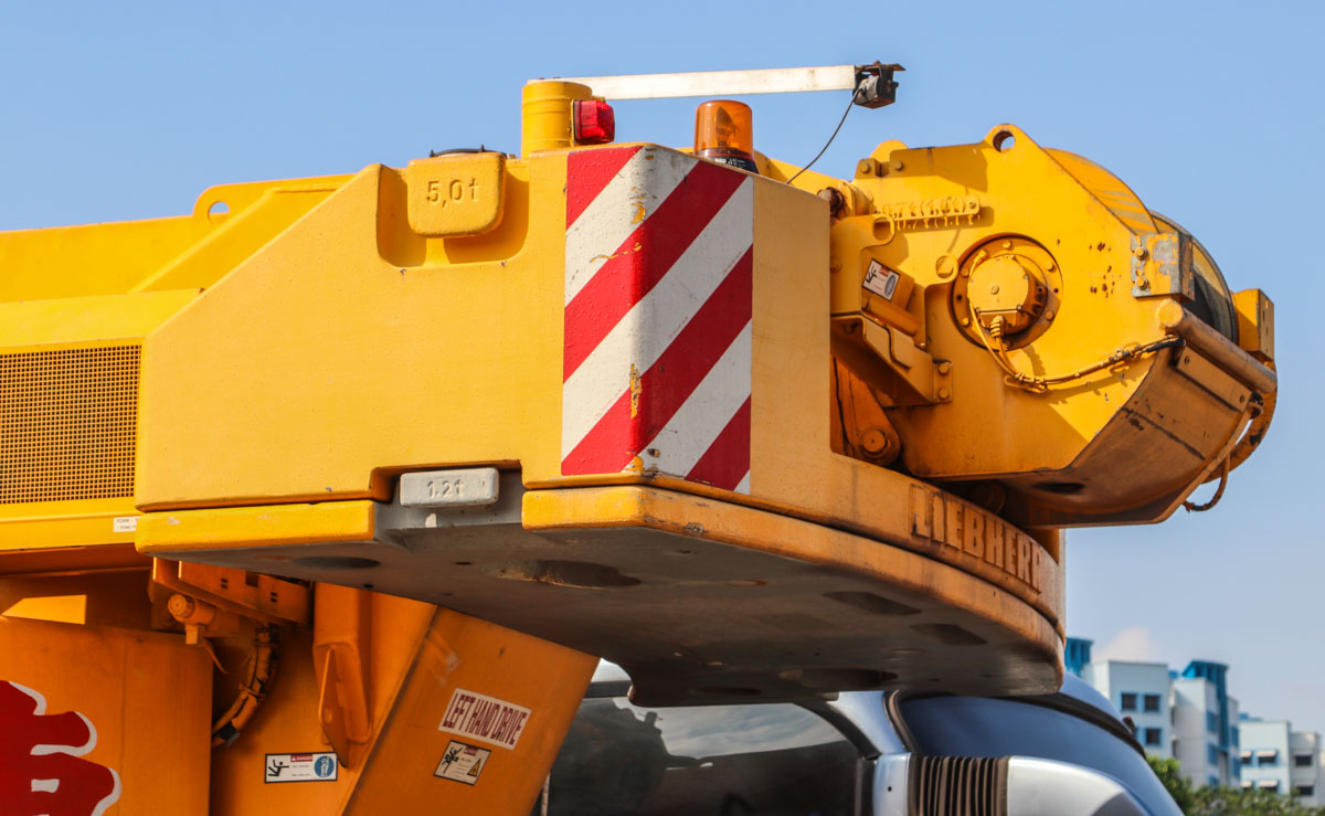 The 6-section main boom has a base length of 11 meters and telescopes in five stages to a maximum length of 50 meters. Optionally, the main boom can be extended with a 9.5 to 16-meter folding jib, which can be mounted to the main boom at angles of 0, 20, 40, or 60 degrees.