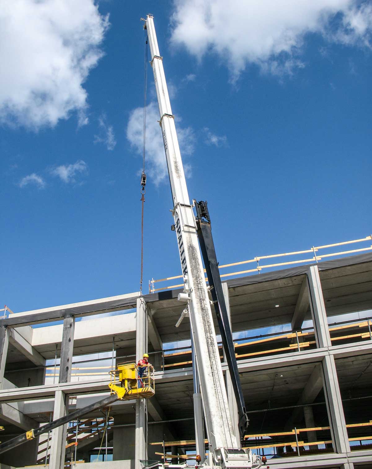 The four-section main boom has a base length of 10.5 metres and telescopes three times to a maximum length of 35 metres. Optionally, the main boom can be extended with a 9.5-metre jib. This jib can be mounted to the main boom at angles of 0, 20, 40 or 60 degrees.
