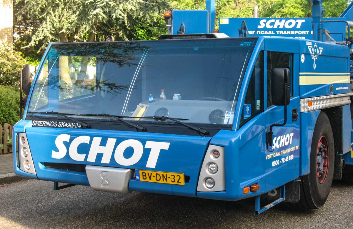 This beautiful Spierings SK498-AT4 of Schot from Alkmaar (NL) was deployed on a Saturday morning in Medemblik (NL) to lift prefabricated elements for a new shed over a building.