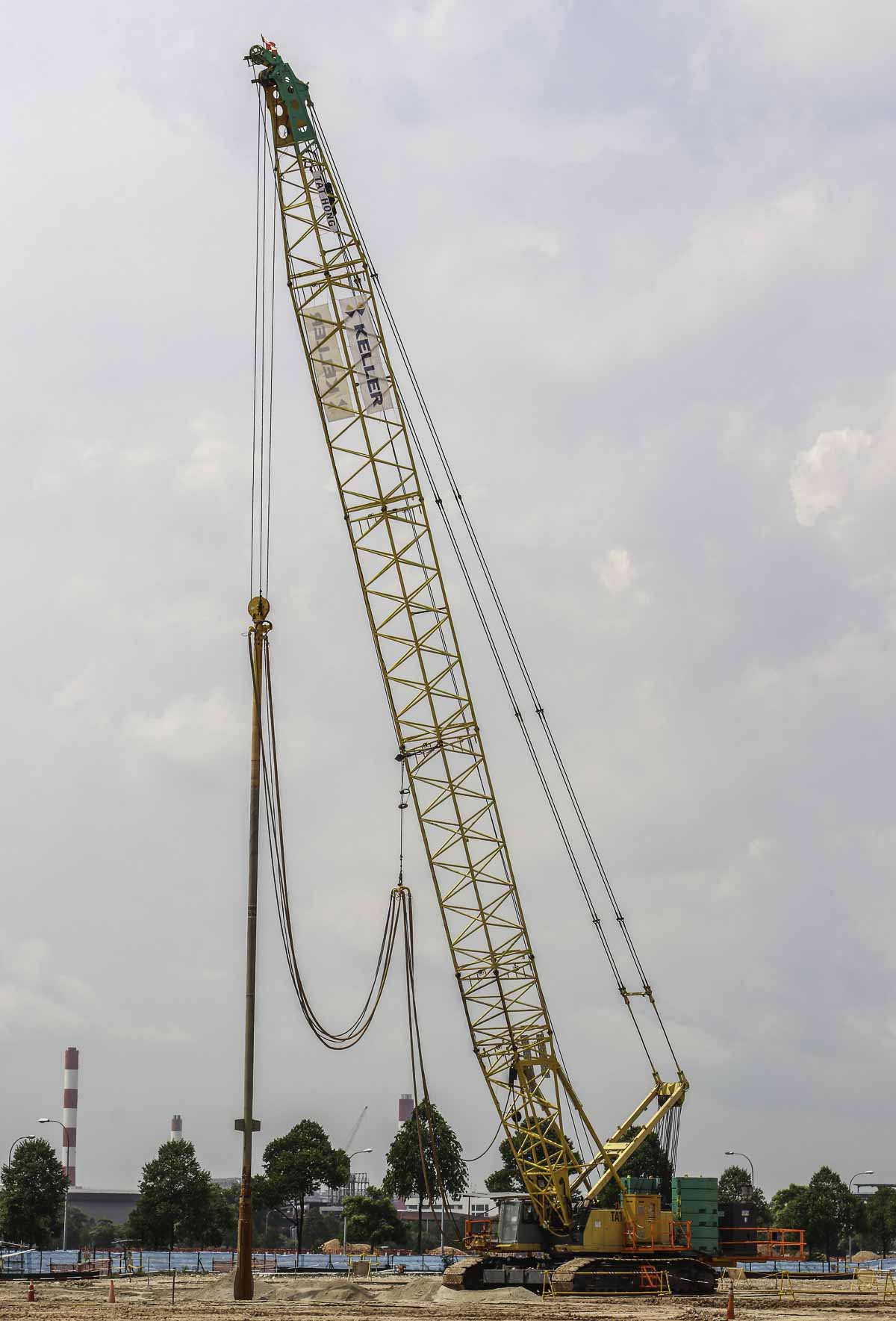 This sharp Hitachi Sumitomo SCX2000A-2 of Tat Hong from Singapore (SG) was together with a Kobelco CKE2500-2 and a Kobelco 7120S used on a construction site for soil compaction.