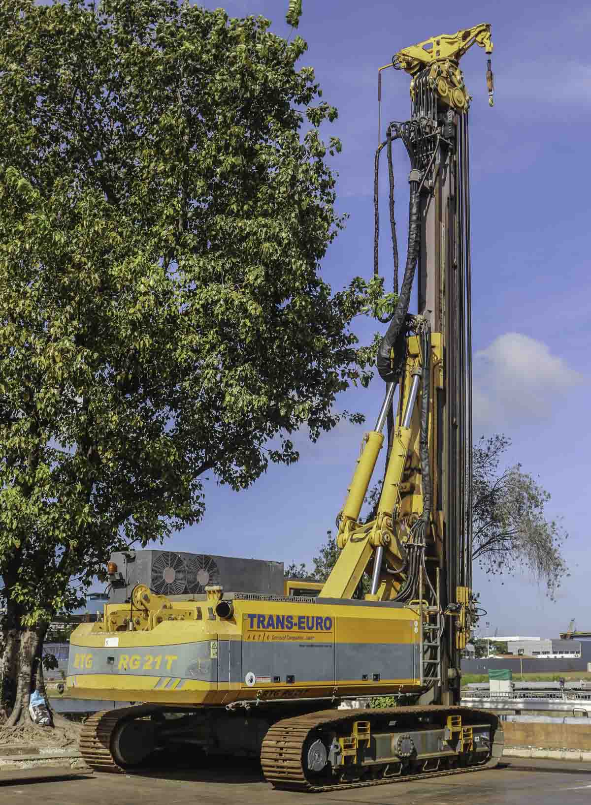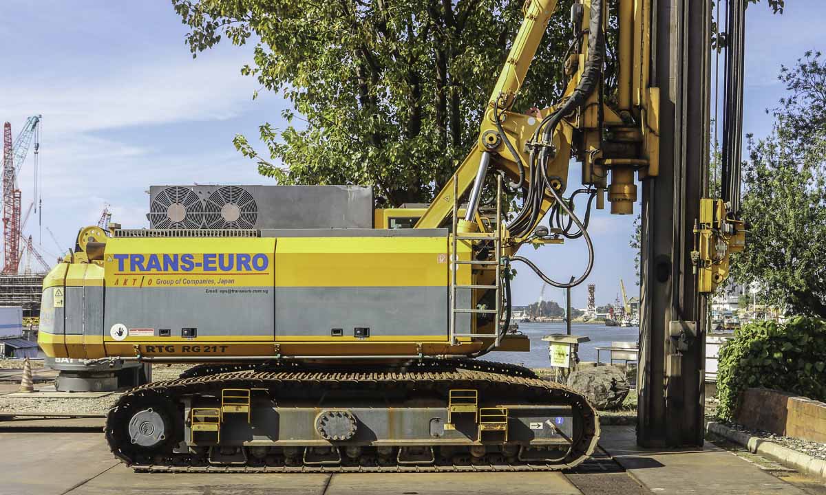 This sharp and interesting RTG RG 21 T belongs to Trans-Euro from Singapore (SG) and stood parked on their yard. It is a foundation rig with an extendable leader. The rig has an operational mass of approx. 71 tonnes.