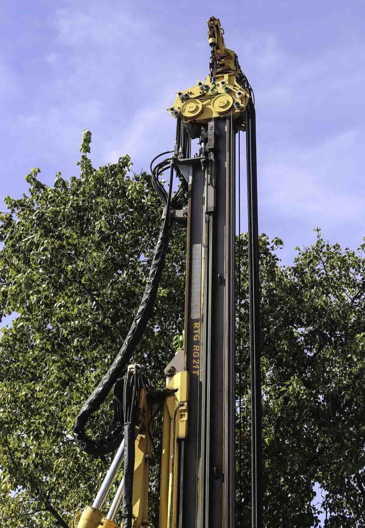 The leader has a 14 meter base length and extends to a maximum length of 23.3 meters. The leader can be swinged 90 degreed to the left and right side against the base machine. In the leader a tool with a maximum torque of 150 kNm can be used.