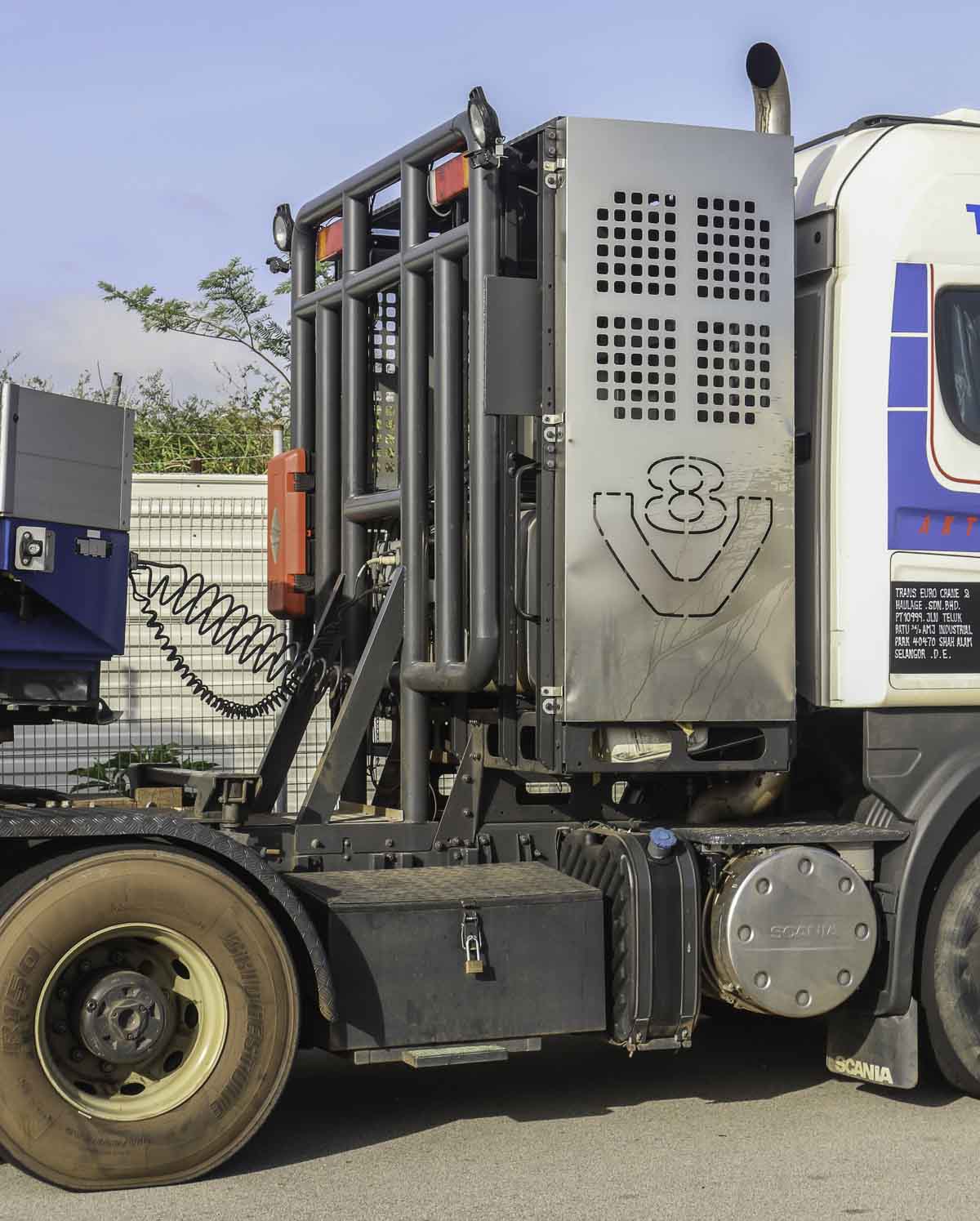 It is also possible to equip this truck with a ballast box to pull heavy trailers. Therefore are quick-couplings made on the chassis. This truck is fitted with a cardanic fifth-wheel.